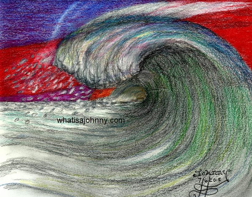 The wave in itself is an amazing part of water, so much force driving it, just to crash in on top of itself, its life come from the force of the wind and the currents and yet each wave holds its own unique beauty, its own character and has an eye (no matter how small) and always ends up the same way in the end (a bubbling mess on the ground) but just what does it see before it crashes up on some shoreline somewhere? What kind of fish, sharks, boats, people, sunsets, sunrises, creatures, objects etc, etc. and so on? Just something to think about. Yep life is great.
